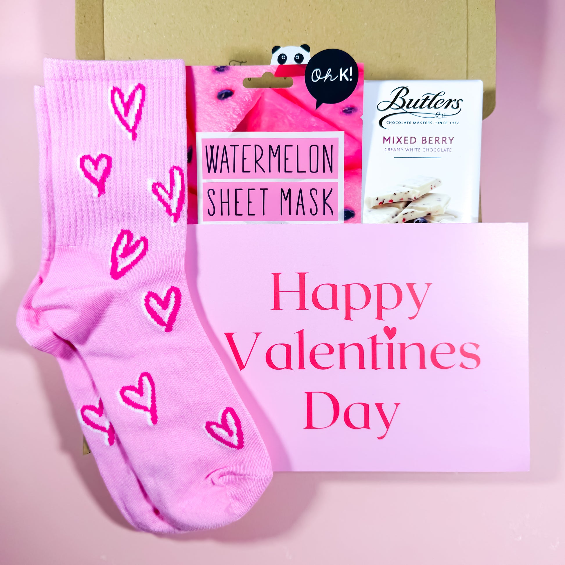 Inside, you’ll find heart-print socks for cosy days at home, a refreshing watermelon sheet mask for a pamper moment, and creamy Irish mixed berry white chocolate to enjoy. Finished with a cheerful Valentine’s card, Little Love is a lovely way to let someone know you’re thinking of them.
